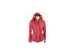 Red Long Cotton Ladies Blouson , Windbreaker Hooded Padded Jacket